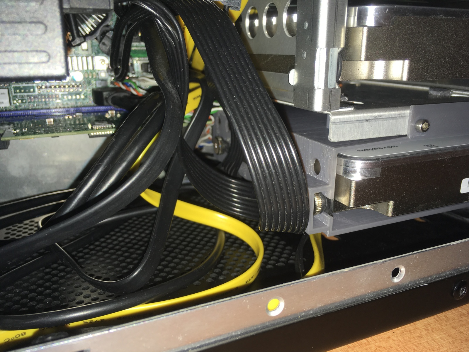 The Lian-Li PC TU 200 case I selected only fits 4 hard disks by default. But thanks to its modular nature, I was easily able to design a 3D printed mount for a fifth disk.
