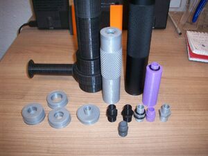 I already did some experiments in the past with 3D-printed silencer imitations for airsoft use. So printing matching threaded adapters was not completely new to me.