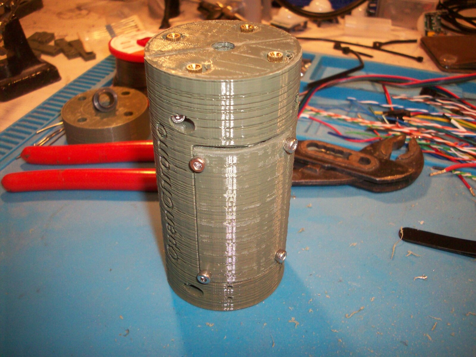 In my first prototype I printed a matching thread into the body of the device itself, split into two halves. This was not a great idea, when screwing both halves back together the threads did not align well enough to screw something in the top.